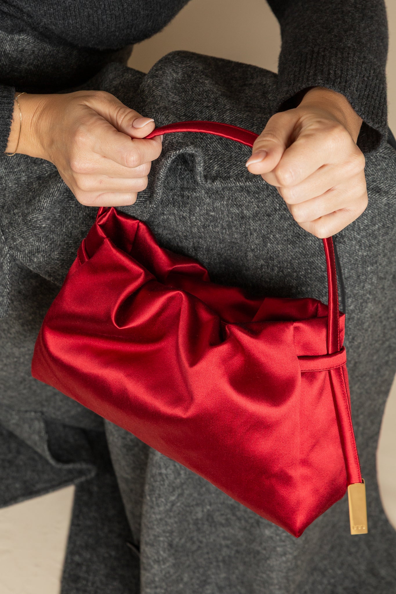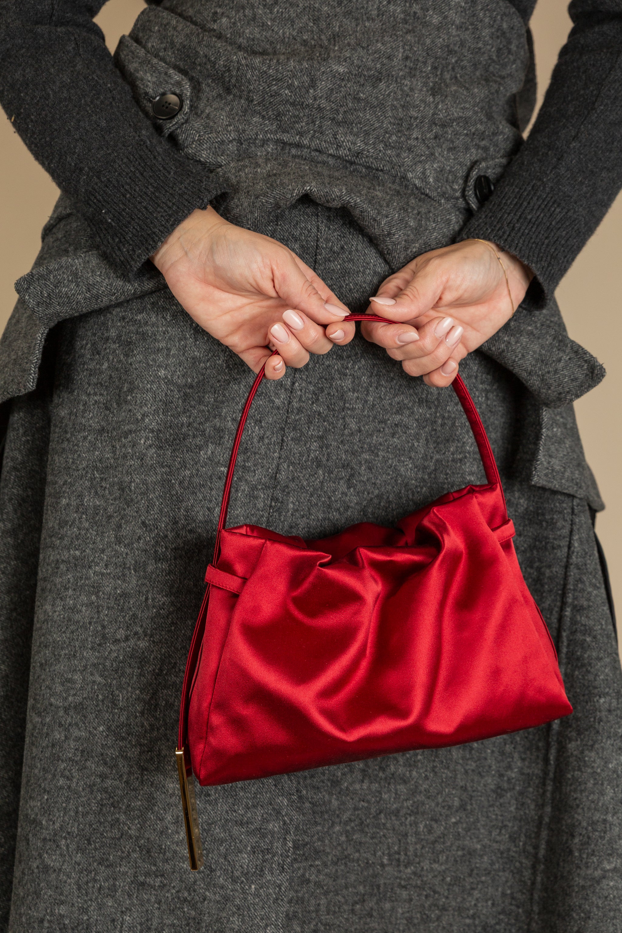 Alma è la top-handle bag in doppio raso imperiale di seta.