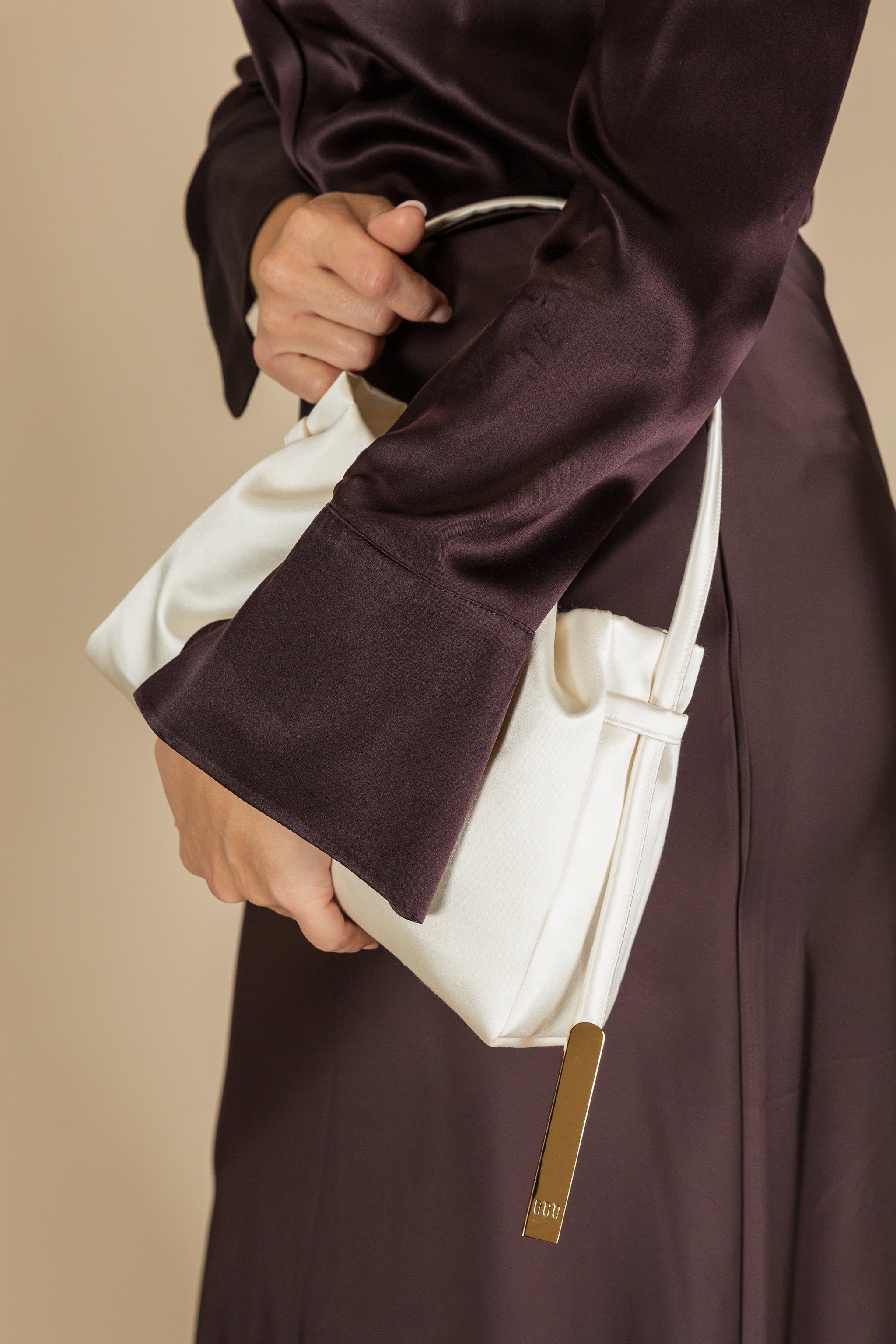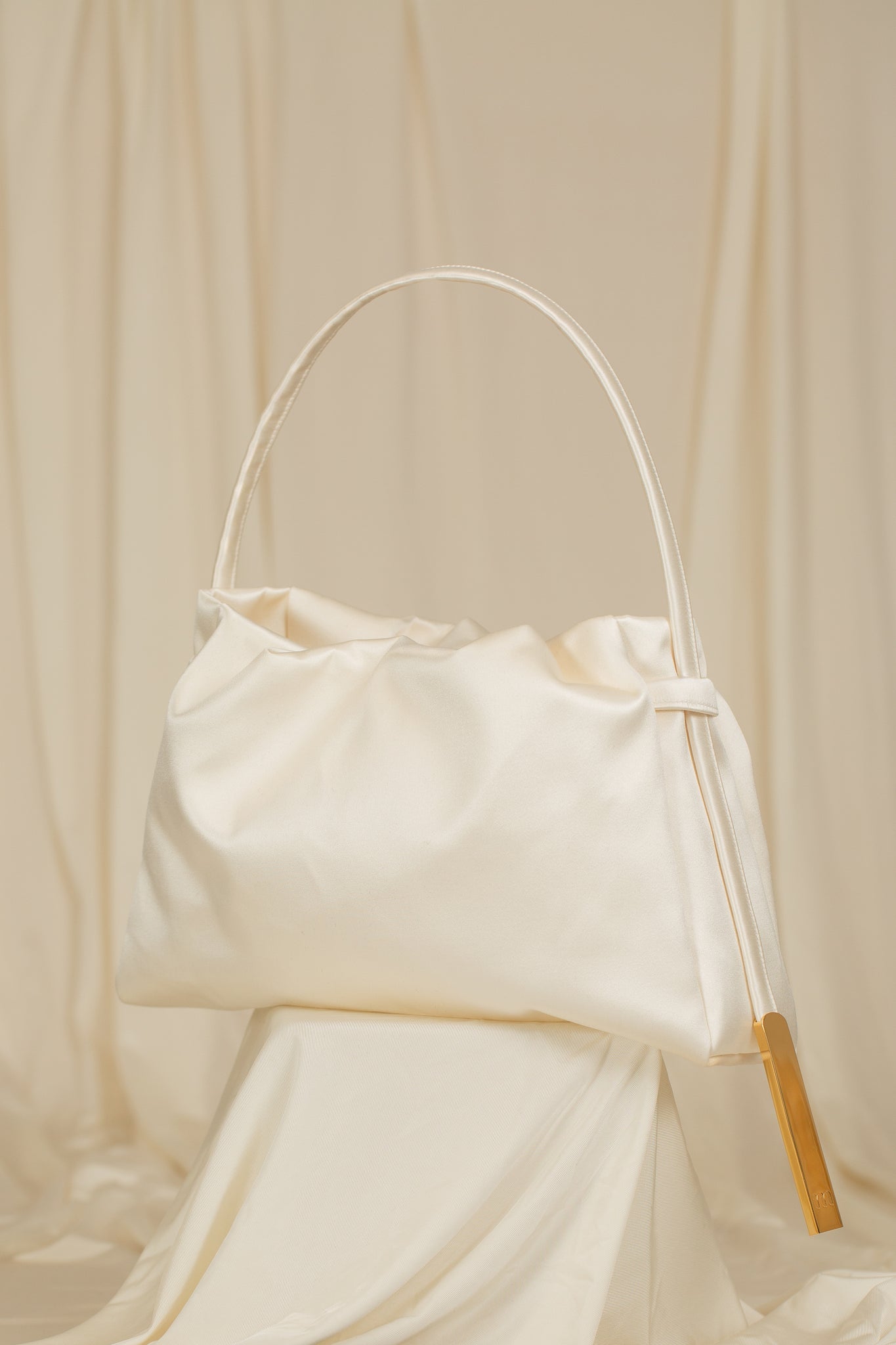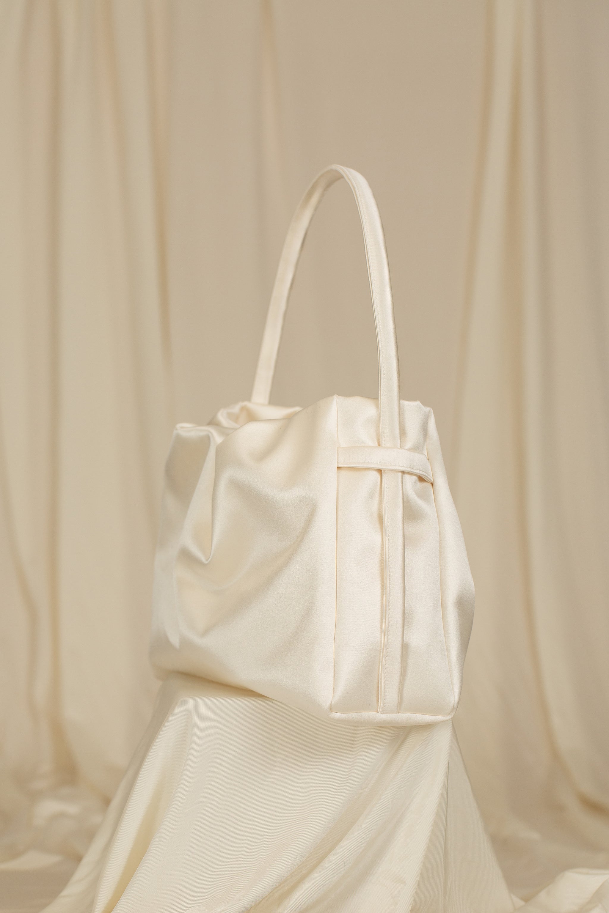 Alma è la top-handle bag in doppio raso imperiale di seta.