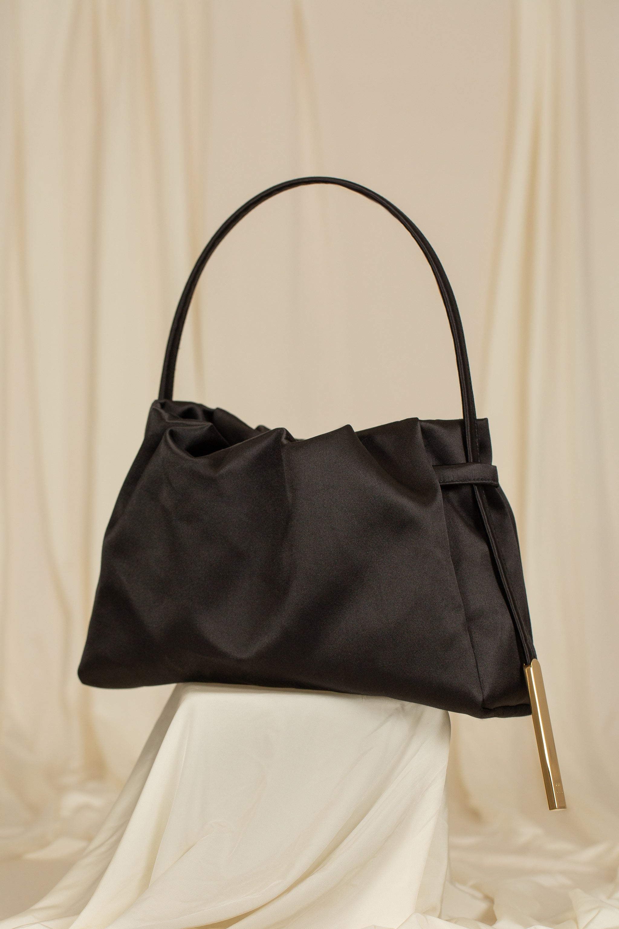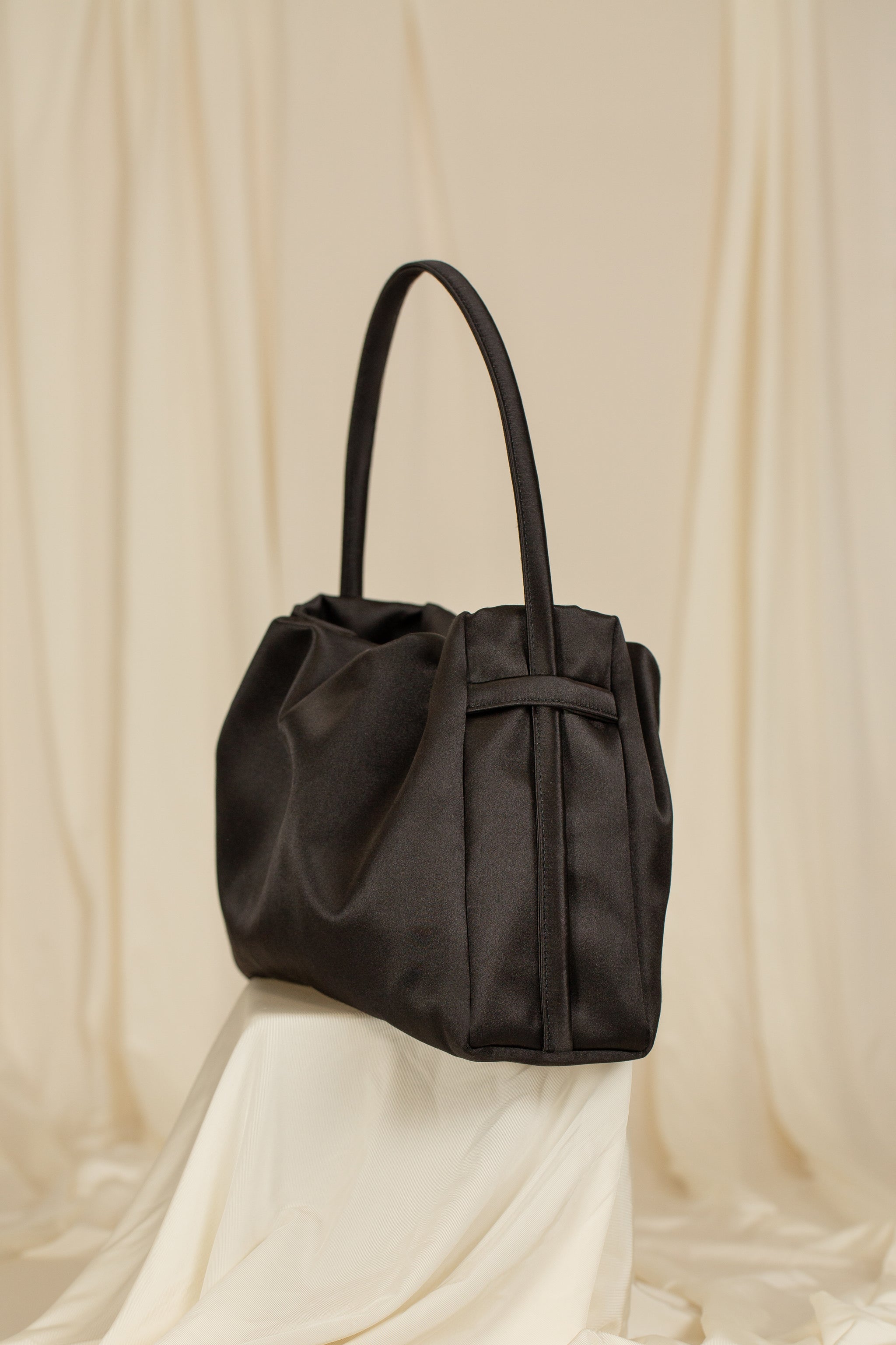 Alma è la top-handle bag in doppio raso imperiale di seta.